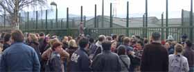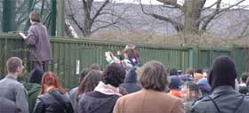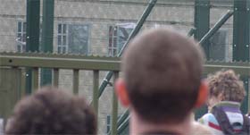 Einem Teil der DemonstrantInnen gelang es, Sicht- und Rufkontakt zu den Flüchtlingen aufzunehmen. Die Gefangenen zeigten ihre Freude über die Solidarität von außen und ermunterten die AntirassistInnen, ihren Kampf fortzusetzen.