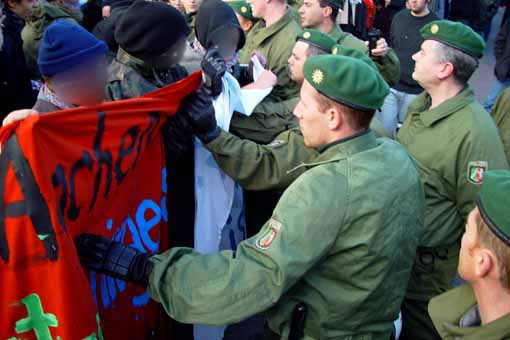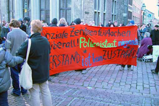 Die Demonstration unter dem Motto "Für selbstverwaltete Freiräume! Gegen den Polizeistaat!" am heutigen Nachmittag in Aachen war eine Reaktion auf die gewaltsame Räumung des besetzten Hauses in der Goethestraße 3 am vergangenen Mittwoch durch - wie mittlerweile von der Polizei bestätigt - 850 Polizisten.