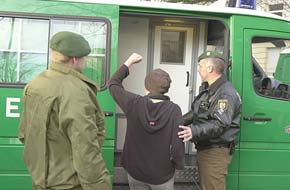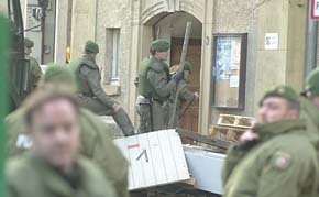 Heute morgen um 8.30 Uhr drangen vermummte und schwer bewaffnete Personen in das Haus ein - wie sich herausstellte ein Sondereinsatzkommando (SEK) der Polizei. Zeitgleich wurden hierfür unter Einsatz von Kettensägen und "Rammböcken" ein Dachfenster und die Eingangstüren aufgebrochen, die dann als Zugang für die Polizei dienten.