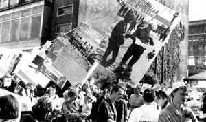 Am 12. Juni war den Boten allerdings die Botschaft abhanden gekommen. Über 500 Schutzpolizisten, Staatsschützer und Staatsanwälte hatten neun Wohnprojekte und zwei Druckereien durchsucht und 750 Exemplare der Nummer 424 sowie 16 Computer beschlagnahmt. Begründung: Angebliche "Billigung und Belohnung" von Straftaten, etwa durch den Abdruck von Bekennerschreiben oder Bauanleitungen für Wurfanker. Für die Interim-MacherInnen war jedoch schnell klar, daß es vor allem darum ging, die seit neun Jahren regelmäßig erscheinende Zeitschrift wie schon die radikal zu kriminalisieren und in die Illegalität zu drängen. "Schönbohms Kriegserklärung ist angekommen, und wir werden darauf reagieren", hieß es in einer Erklärung. Der Berliner Innensenator Schönbohm sieht nicht nur in der autonomen Szene, sondern sogar in Obdachlosen und Graffiti- Sprayern wesentliche Hürden für Berlin auf dem Weg zur "Hauptstadtreife".