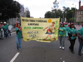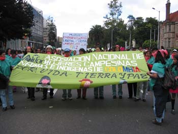 ecenas de miles de mujeres marchamos en Bogotá, Colombia, el 25 de julio. Coreamos un NO rotundo a la Guerra y consignas contra la militarización de la vida civil y por la solución política negociada del conflicto armado. Queremos sembrar la semilla de la paz.