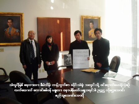 Burmese pro-democracy and human rights activists in Canada on the Global Action Day Against Salween River Dams, 28.02.2007, protest in front of Thai Embassy against the construction of environmentally harmful Dams along Salween River on Thai-Burma border region.