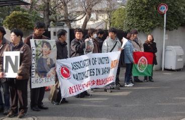Burmese pro-democracy and human rights activists in Japan on the Global Action Day Against Salween River Dams, 28.02.2007, protest in front of Thai Embassy against the construction of environmentally harmful Dams along Salween River on Thai-Burma border region.