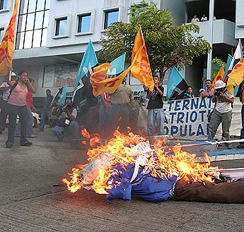 Los grupos estudiantiles universitarios PAT, BPU, JP-15 y FER-29, a las 10: 00 a.m. de ayer realizaron un piqueteo frente de la sede de la Embajada de Estados Unidos en Panamá, ubicada la avenida Balboa, en rechazo a las negociaciones del TLC. Se corearon consignas antiyanquistas y se quemaron muñecos y carteles.