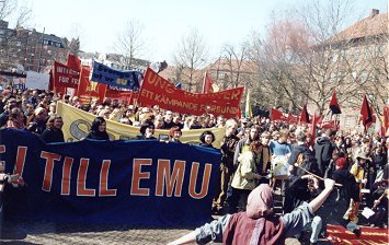 Mehr als 2000 Personen beteiligten sich an einer Demonstration gegen das Treffen der Finanz- und Wirtschaftsminister der EU (Ecofin) in Malmö in Schweden am 21. April. Das Fruehlingswetter sorgte fuer gehobene Laune, als die Demo losging. Nach nur ein paar hundert Metern stuermte jedoch Riot-Polizei die Demo, isolierte 229 DemonstrantInnen und nahm mit brutaler Gewalt Festnahmen vor.Die Medien zeigen Bilder von DemonstrantInnen, die von Polizisten mit Riot- Ausruestung und unbewegten Gesichtern mit Faeusten und Knueppeln geschlagen und ueber den Asphalt gezogen werden. Ein Mitglied des EU- Parlaments von der schwedischen Gruenen Partei wurde auch festgenommen, als er gegen die offensichtliche Polizeibrutalitaet protestierte. Seine Einlassungen, er geniesse als EU-Parlamentarier Immunitaet, traf auf von Adrenalinstoessen taub gewordene Ohren. Die DemonstrantInnen im Kessel wurden ueber 2 Stunden einzeln nacheinander abtransportiert und wurden Opfer von Brutalitaeten und Erniedrigungen - alles, waehrend Medien und andere DemonstrantInnen hinter den schwerbewaffneten Polizeiketten zusahen.