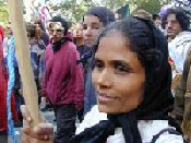 This tradition of women's self defense has a long history. In the 1940s, shortly before the political independence of India and Pakistan from British rule (i.e. in late 1946-early 1947), tenants were struggling for a larger share of the crop. The movement was called the 'tebhaga' movement, a movement in favour of a two-third share of the harvest for the cultivators. At that time too 'nari bahini', women's troops, were formed, in particular in the most militant phase of the uprising, to defend the tenants' right to their harvests. The jotedars became very nervous!