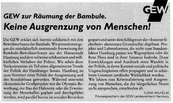 nichts an der Politik in Hamburg ändert! >>presseerklärung