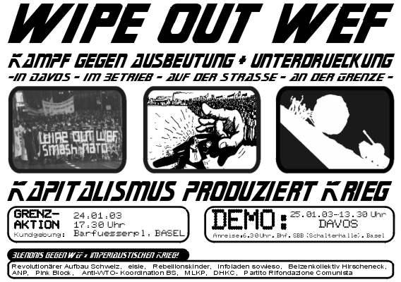 Kampf gegen Ausbeutung + Unterdrückung -in Davos - im Betrieb - auf der Strasse - an der Grenze-
