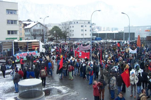 Der grösste Teil der Demo wartete in Landquart stundenlang auf die Verhandlungsergebnisse einer Vorhut, die in der Kontrollstelle Fideris freie Durchfahrt verlangte. Neben aktuellen Infos vom Lautsprecherwagen gab es Vokü, Live-Musik und Theaterdarbietungen sowie Wintersport (Schneeballwerfen) am Rande der Kundgebung