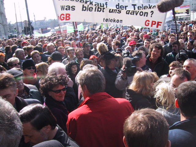 Bereits am Vormittag protestierte die Gewerkschaft der EisenbahnerInnen mit kleinen Kundgebungen in mehreren Bahnhöfen und einer Podiumsdiskussion am Südbahnhof gegen die Zerschlagung der ÖBB in mehrere Gesellschafte und gegen Einsparungen auf Kosten von Sicherheit und Personal. >>Presseaussendung der Gewerkschaft der EisenbahnerInnen